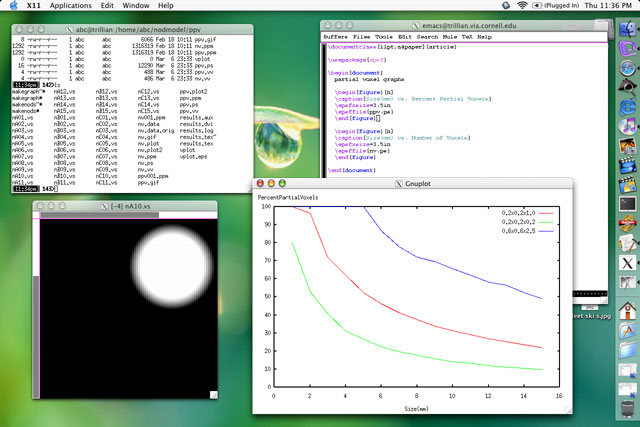 I finally broke down and bought Matlab. I got the student edition (6.5 release 13) which installs on Windows, Mac OS X, and Linux. The OS X version is basically identical to the Linux version, just that it is compiled for mac. The installation documentation says that DarwinX and OroborOSX (X11 and an X11 window manager) are required and will be automatically installed when Matlab is installed. I guess they released this version of Matlab before Apple came out with it's own X11 window manager. Anyway, I wanted to use Apple's X11 because it's faster, and after googling I found a few pages that deal with installing and running Matlab using Apple's X11 window manager. After an hour of hacking around, I finally got Matlab installed and running. Here is the modified installation process for the student version of Matlab on OS X:
