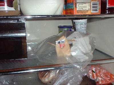 Next came building the little cheese dudes. Believe it or not, super glue works really well on imported cheeses. Here's a shot of Edam before his eyes were in the right place: